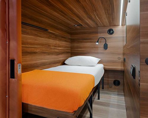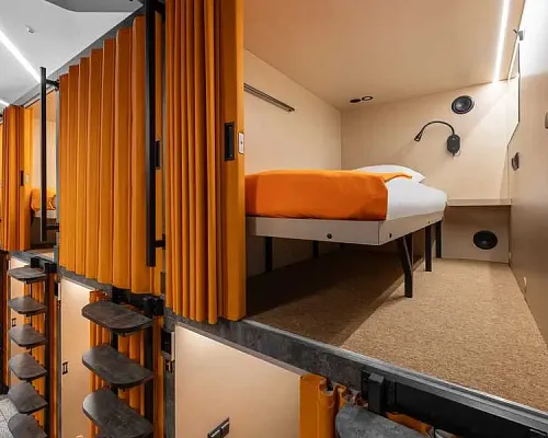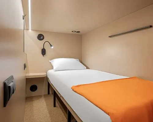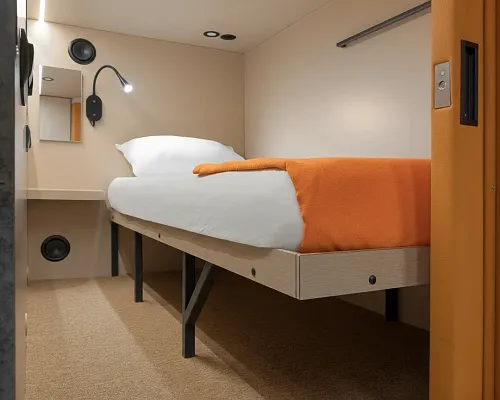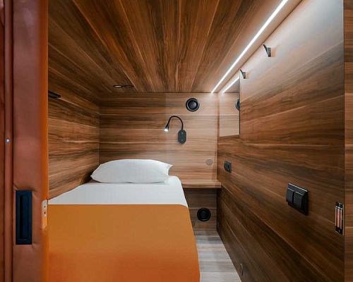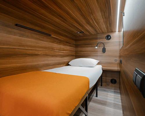 Arrive the evening before and rest comfortably. Sleep soundly in a capsule hotel before your flight. 8-hour package from 3,600₽. 25% discount for week-ahead booking.