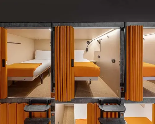 "Flight was delayed, booked for four hours and slept well. Quick check-in. Clean bed sheets. The capsule is quiet with good soundproofing."