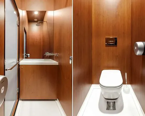 - новые спроектированные мини-номера с душевыми кабинами и туалетами;