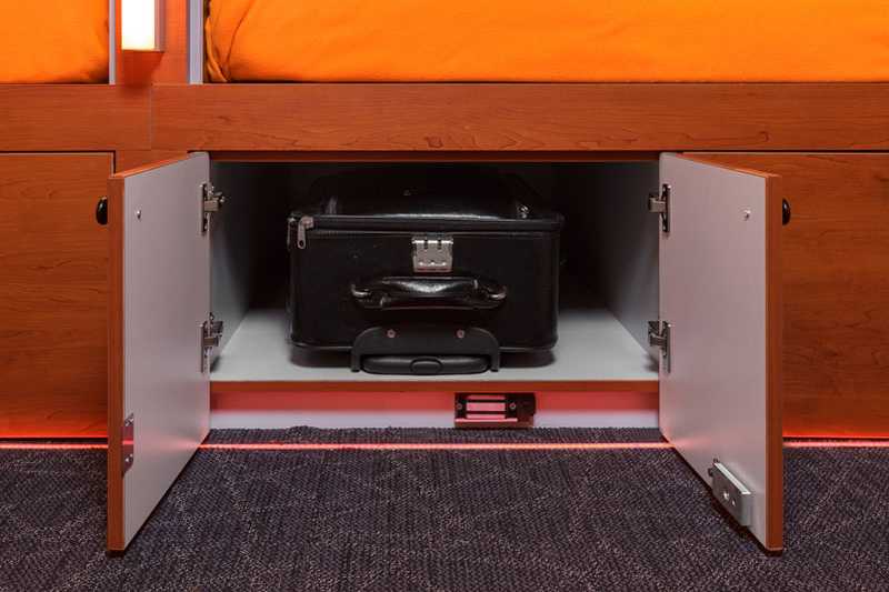 - Современный эргономичный дизайн, удобная кровать, места для хранения вещей, зеркало